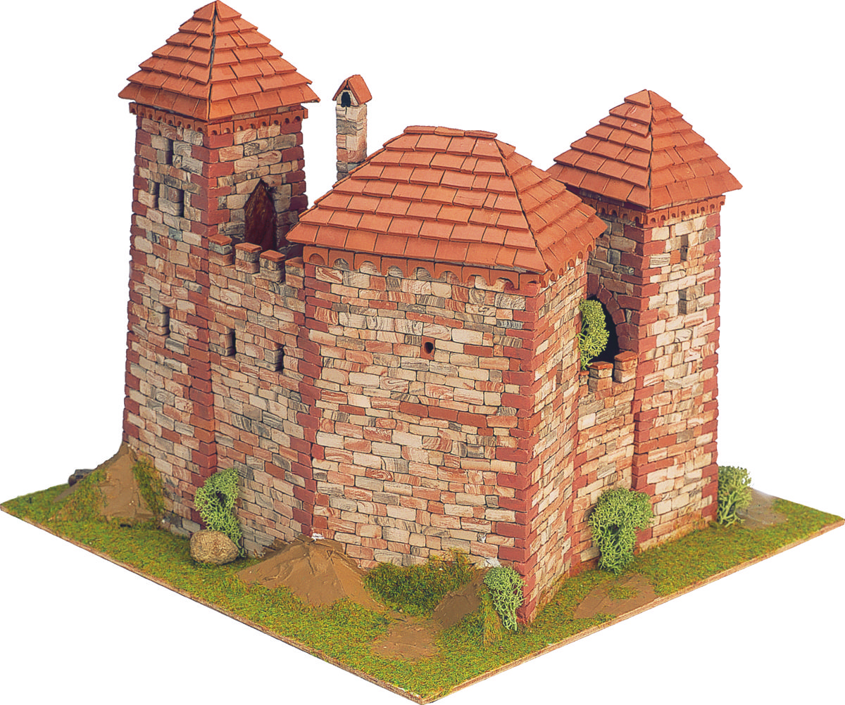 DOMUS KITS® bietet mit den Steinbausätzen der Serie Mediveral eine Reihe klassischer Burgen und Castelle für den anspruchsvollen Modellbauer. Die DOMUS KITS®-Bausteine sind aus dem natürlichen Material Ton hergestellt und bei 1000° C gebrannt. Ein einfaches Konstruktionssystem, vorgefertigte, passgenau geschnittene Holzteile werden als Gerüst - Karkasse, sozusagen als Rohbau für das zu bauende Gebäude genutzt. Dieses Rohbau - Haus wird anschließend mit unebenen Wänden aus Tonstein bedeckt. Die vielen verschiedenen Keramikteile und Anbauelemente geben dem fertigen Bausatz ein imposantes und dekoratives Äußeres.