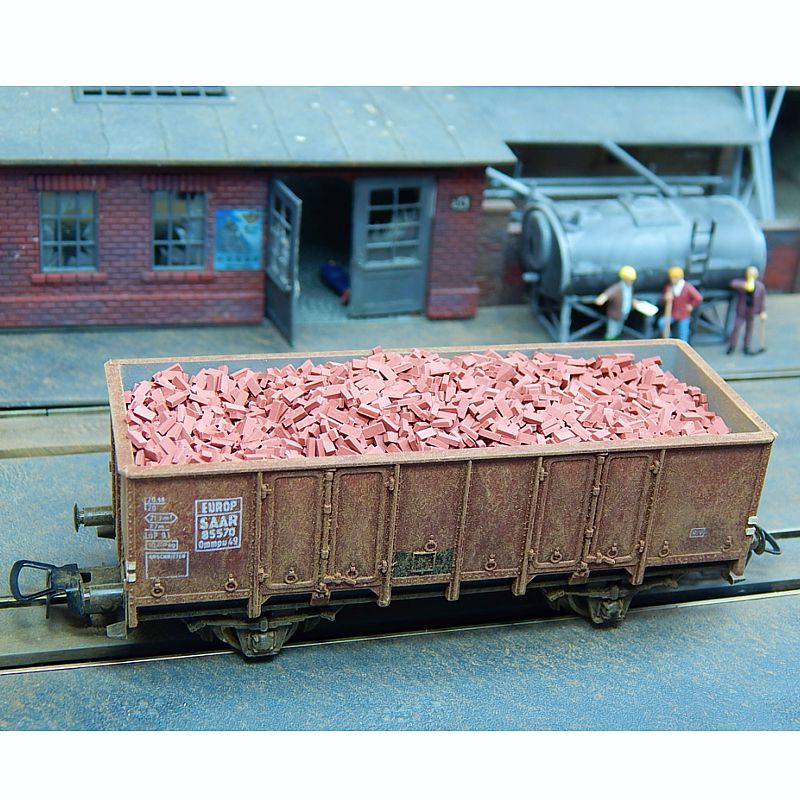 Mauersteine, Miniatursteine als Zubehör für den Modellbau im Maßstab 1:87, Modelleisenbahn H0. Bauen Sie mit den Ziegelsteinen eigene kleine Häuser, gestalten Sie ein Diorama mit Mauern und Gebäuden. Auch als Ladegut für die Modelleisenbahn H0 verwendbar. Lassen Sie Ihrer Kreativität freien Lauf.